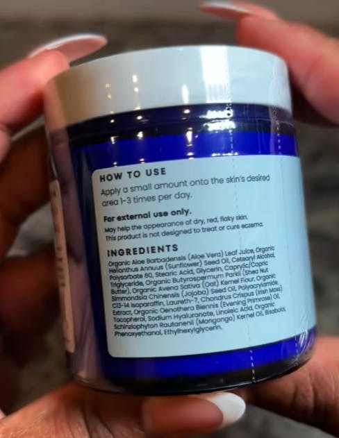 Deeply moisturises while calming, cooling, and soothing inflammation and supporting skin healing.